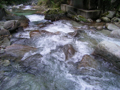 ということで、ご近所探検。もともと山の渓谷沿いにある旅館だったので辺りを少し行くと
