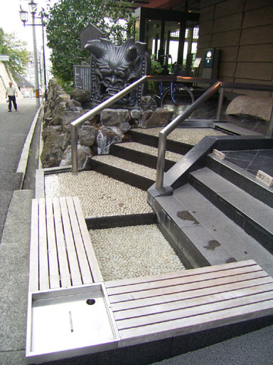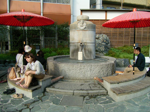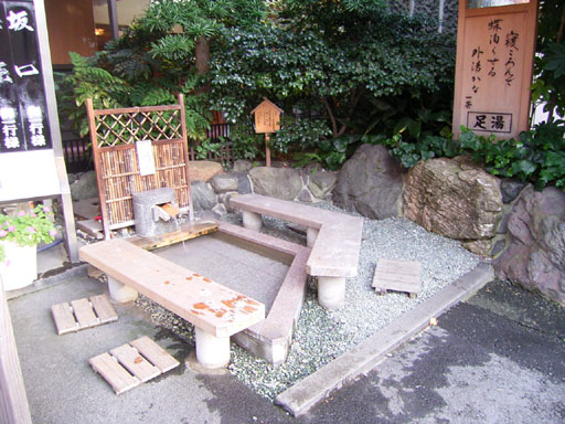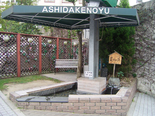 と必ず誘導されます。通行人から目に付きやすい場所に足湯が設置されているので
