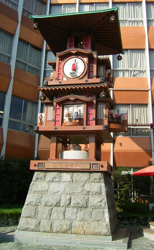 この『放生園』は松山駅の前にあって横には松山名物?からくり時計が立っています。