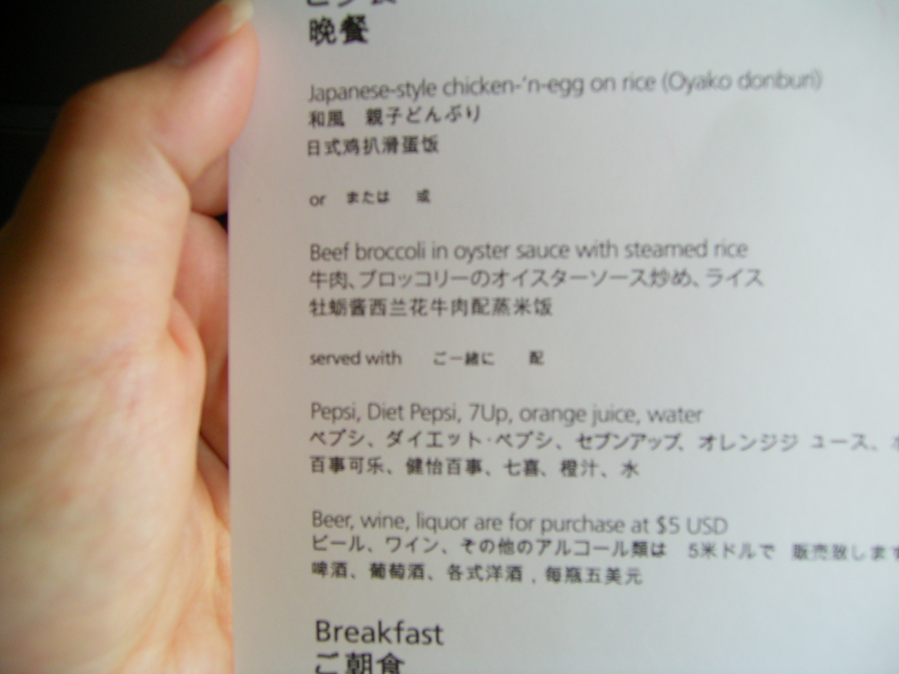 でてきますよね。アメリカ行きは夕食・朝食と2食付ついてい